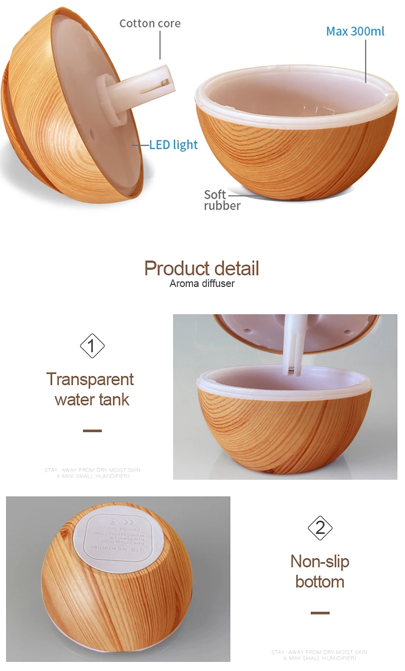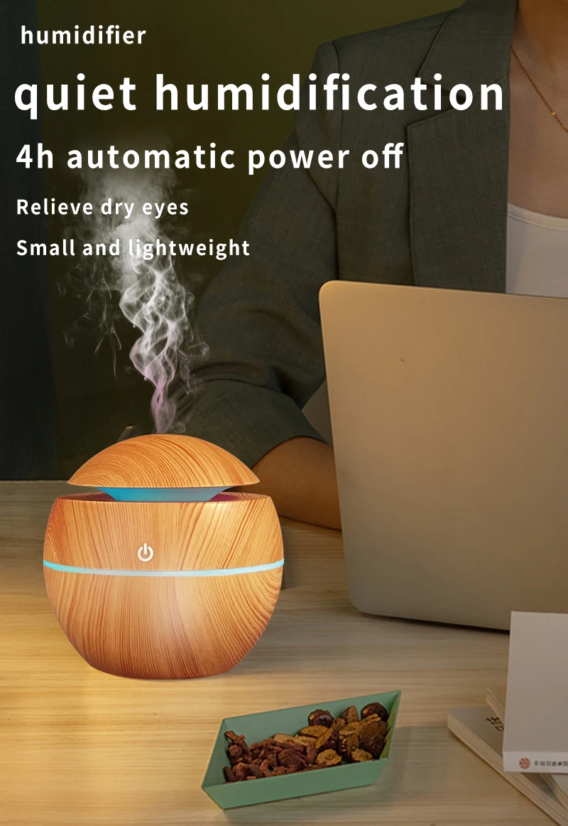 HonSun Hot sale Wood grain humidifier Led Pro Diffuser Mini home desktop office humidificador fog quantity Humidificateur