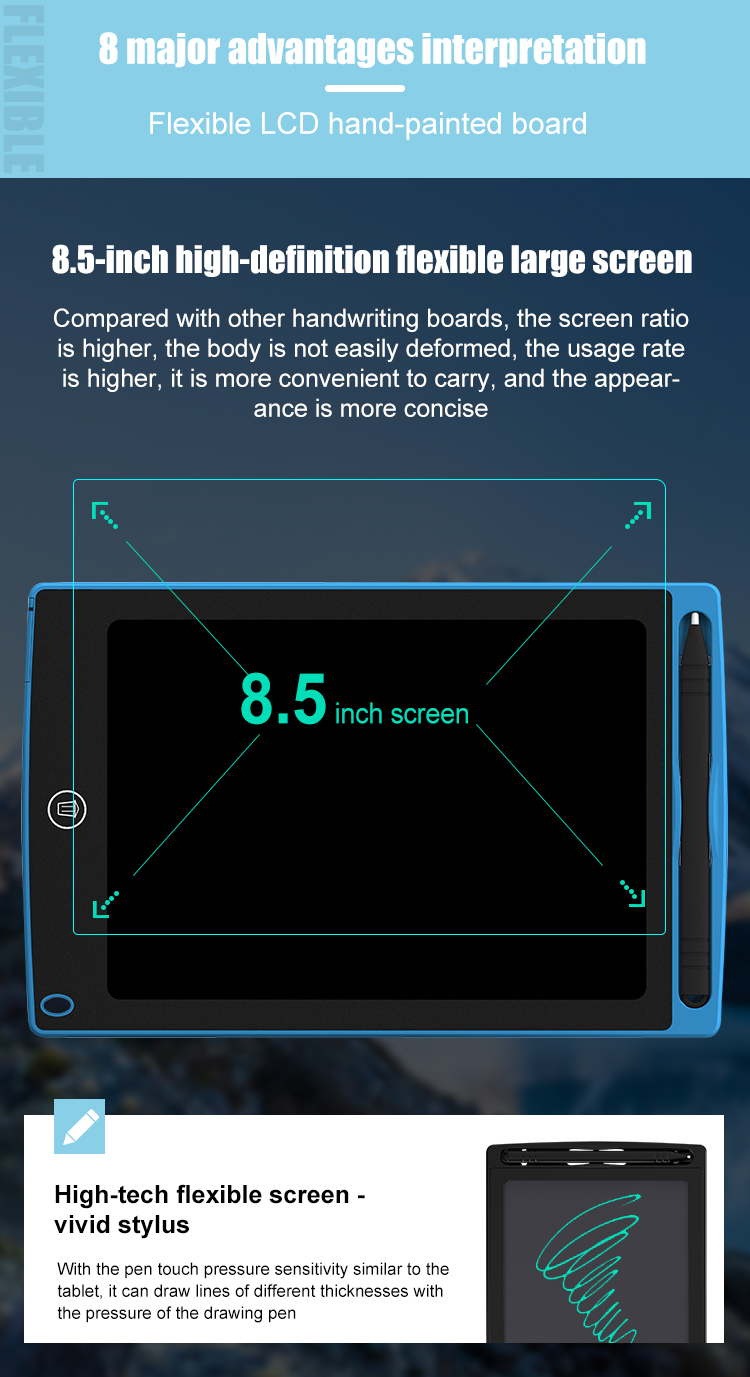 The LCD tablet adopts backlight, no blue light, drawing lines are clearer, can protect children's eyes, especially for hours of fun.