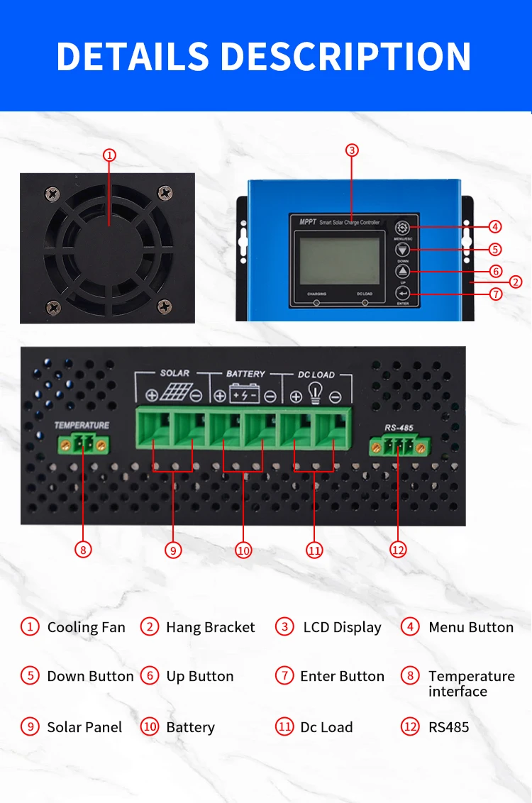 Model No. | MPPT-50 | MPPT-60 | MPPT-80 | MPPT-100 | MPPT-120 | |||||||