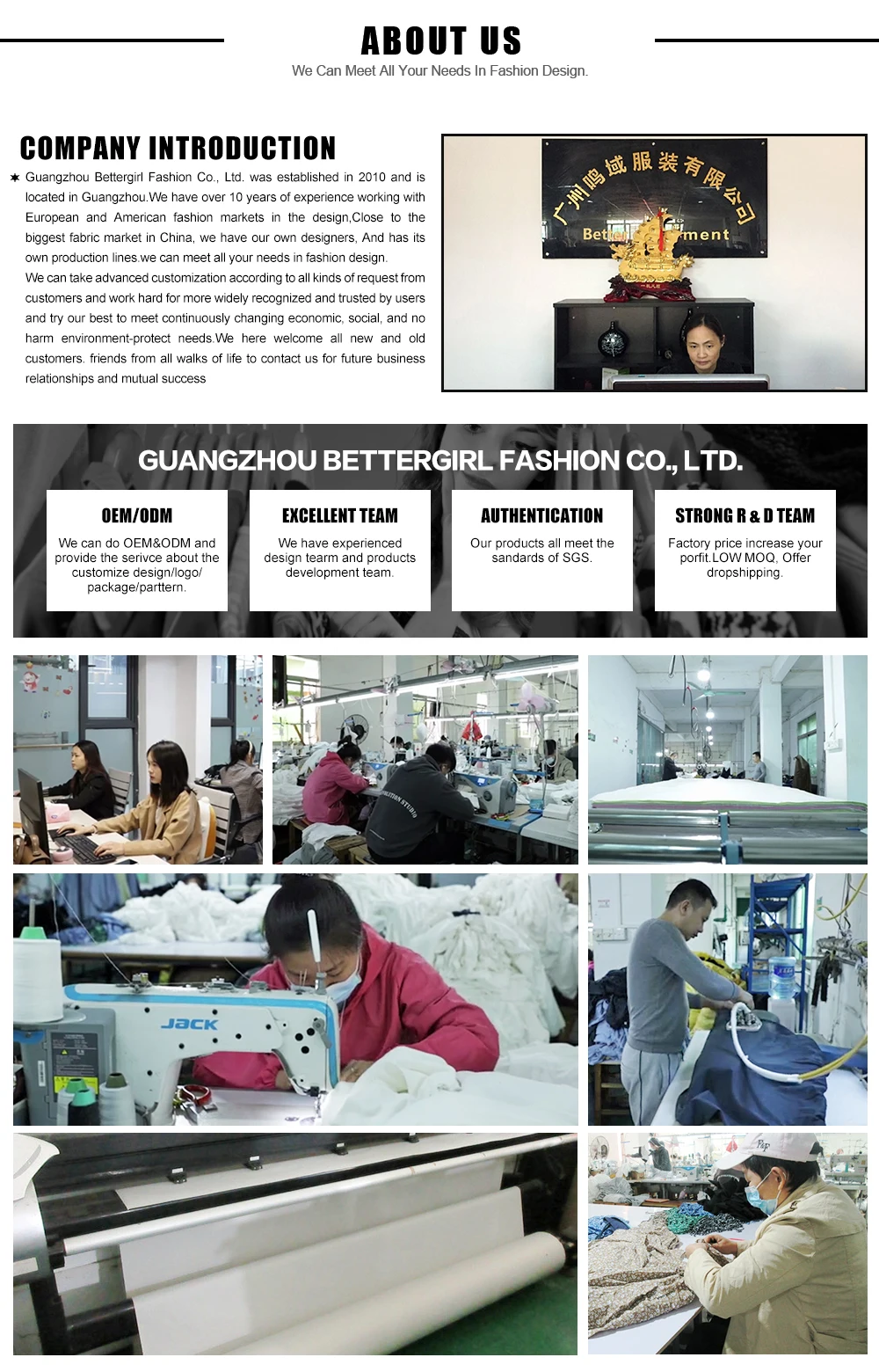 | | | | | | Linen/Cotton/Wool / Polyester/Silk... | | | | | picture colorcan customization color you want | | | | | S M L(can customization size you want) | | | | | comfortable,breathable | | | | | WOMEN DRESS,SKIRT,JACKET,SUIT,COAT,PANT,JEAN... | | | | | Stitching,Loose,Casual,Elegant,Sexy... | | | | | High quality | | | | | 1 piece | | | | | EMS, DHL, Fedex, TNT, Sea shipment. | | | | | 7-10 days after the receiving of the payment. | | | | | T/T, Western Union, Money Gram, Trade Assurance | | | | Q1:Are you a direct factory? Yes, support ODM/OBM/OEM, sample customization.