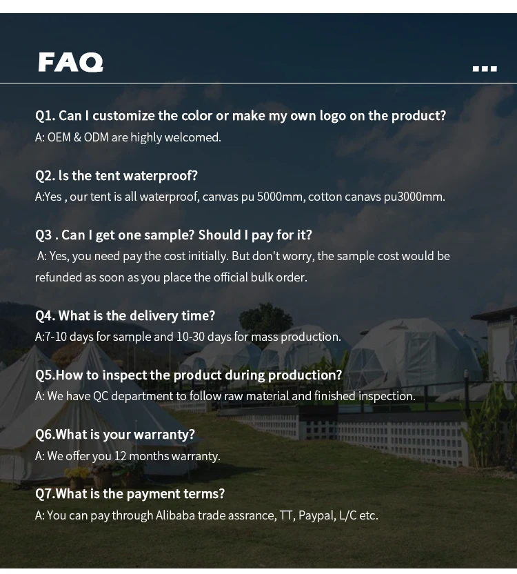 Safari Glamping Hotel XB-M10 Tent Parameters | ||||||||