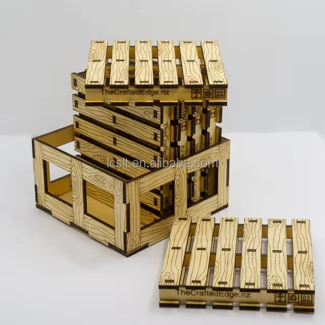 Custom laser cut wood Pallet shapes Pallet drink coasters wooden with box