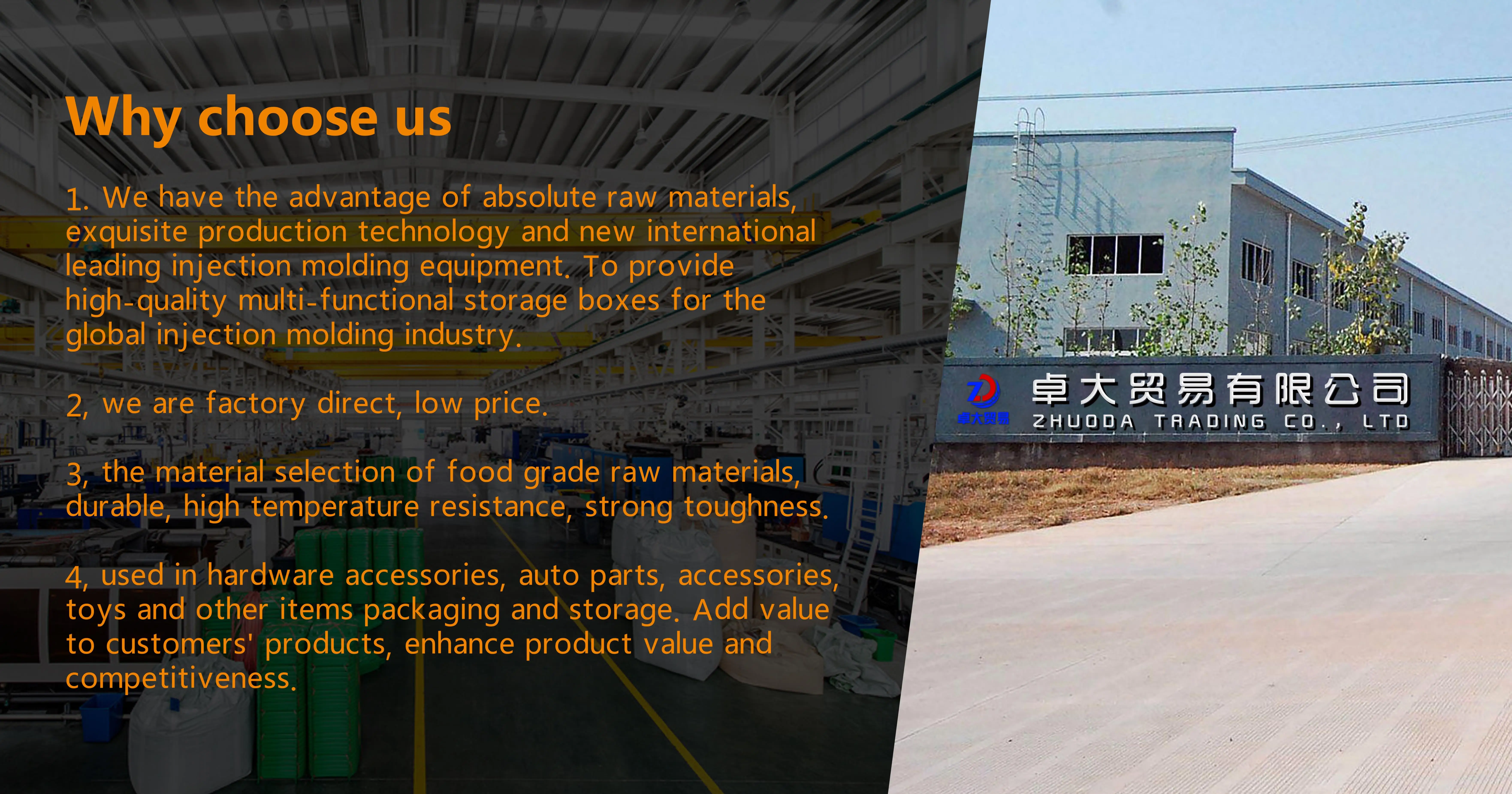 1) We have the advantage of absolute raw materials, exquisite production technology and new international leading injection molding equipment. To provide high-quality multi-functional storage boxes for the global injection molding industry.