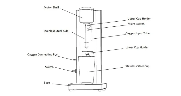 Features | Main machine and cup in stainless steel. Cup:60*92*170mm W/oxygen inlet tube. | ||