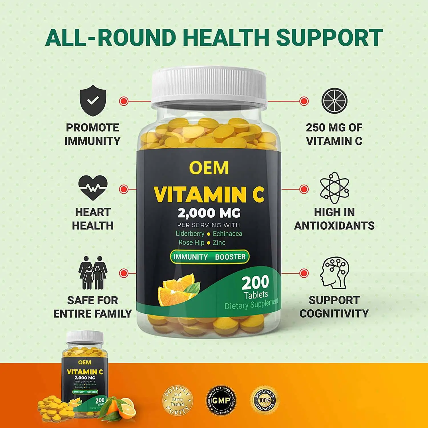 Hot Sale Oem All Natural Support Elderberry Rose Hip Extract Vitamin C With Zinc Supplements Immune Boosting Vitamin C Tablets