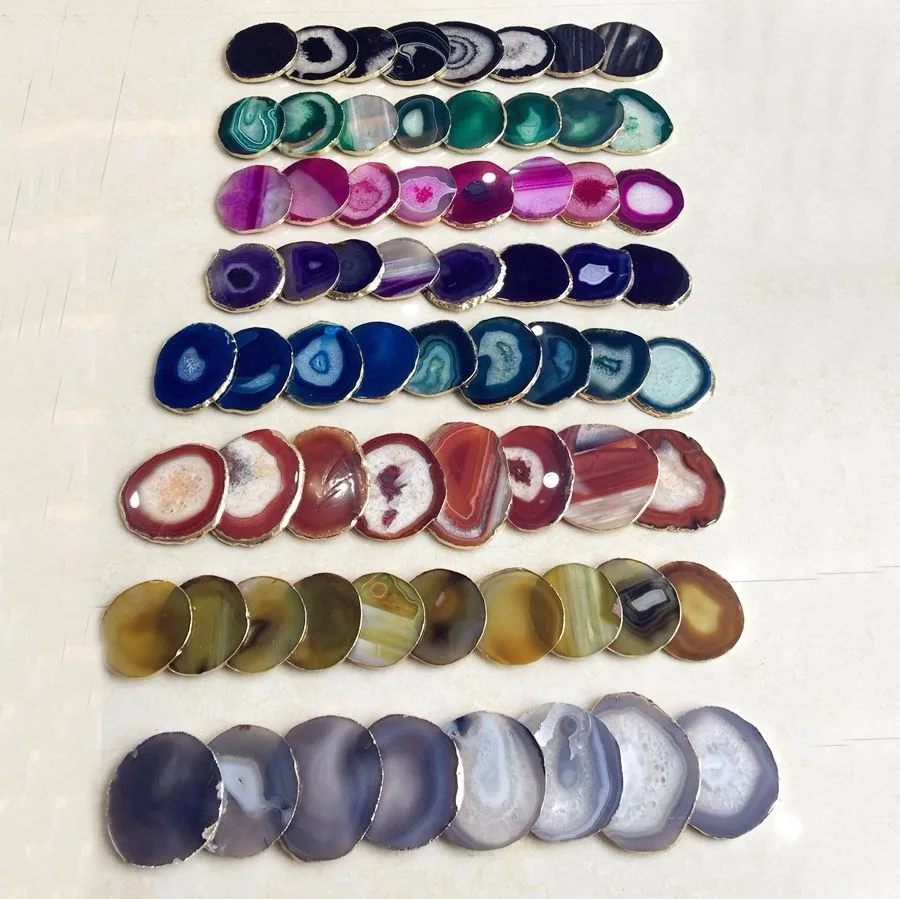 Various color trays brazilian gold border slice agate coaster