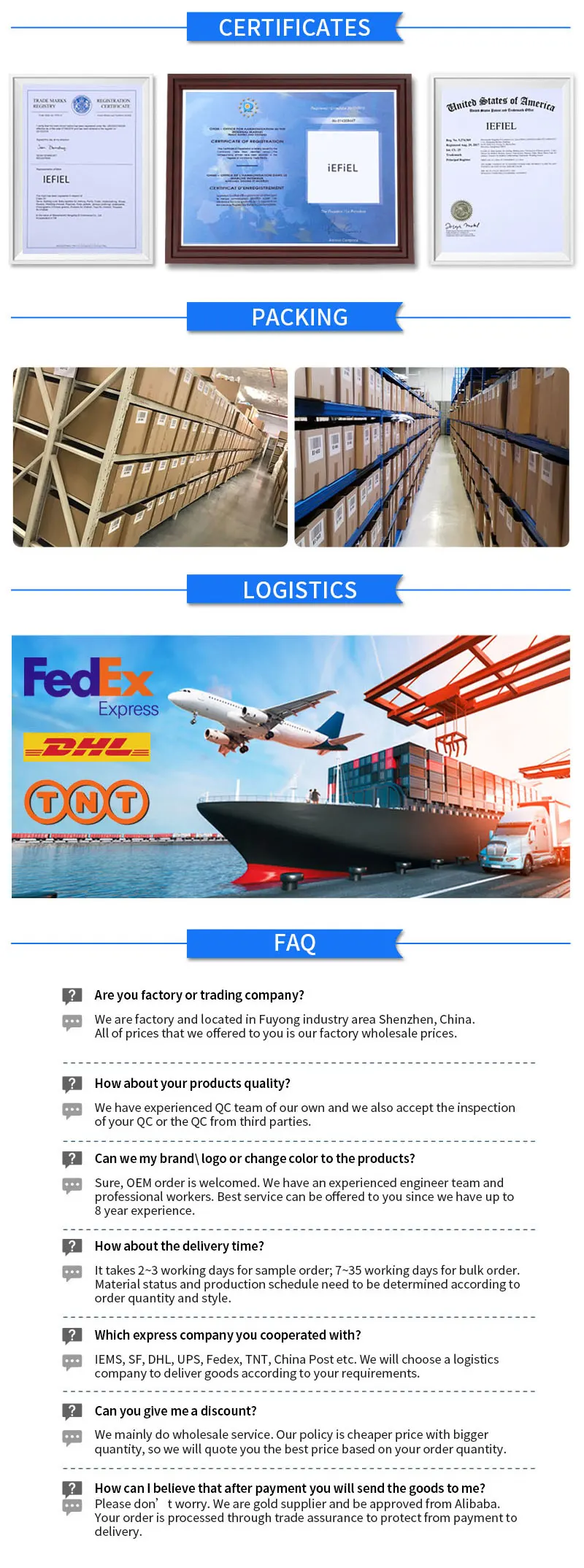 7 | Production lead time | 15~45 working days, depending on the design and quantity |