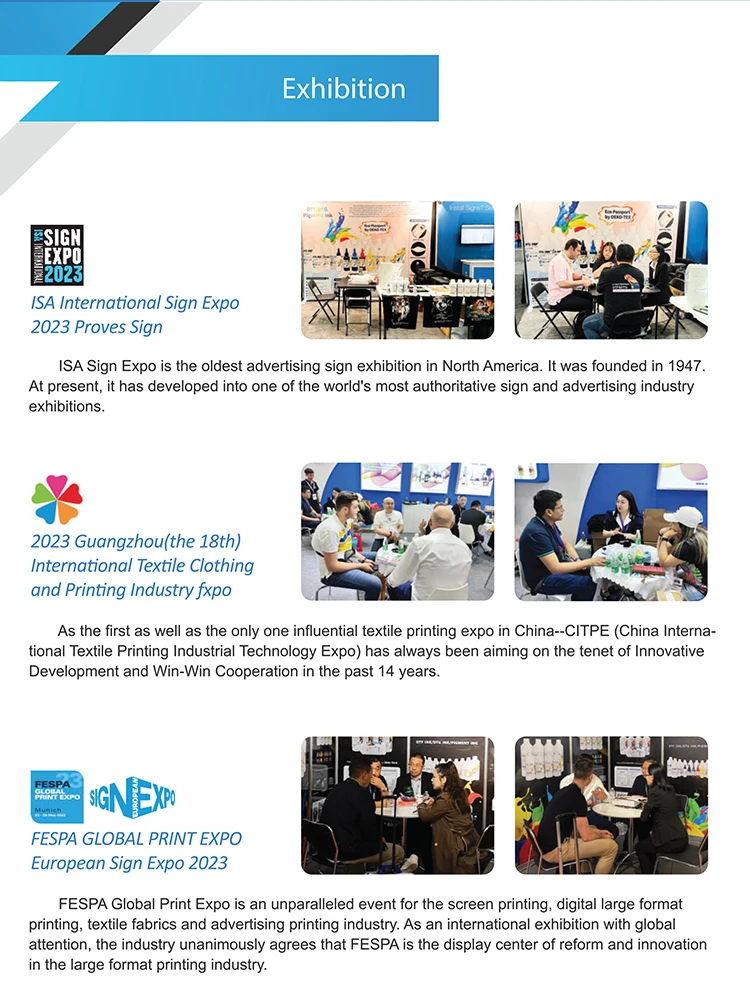 1.Professional R & D, manufacturing inkjet ink for more than 20 years. 2.Annual output exceeds 6000 tons. 3.Products sell well in many countries and regions at home and abroad. 4.One of the leading suppliers of digital inkjet ink in China.