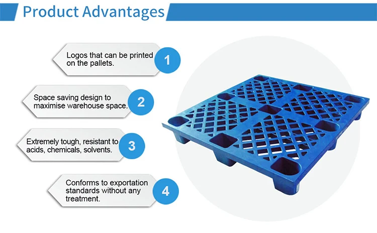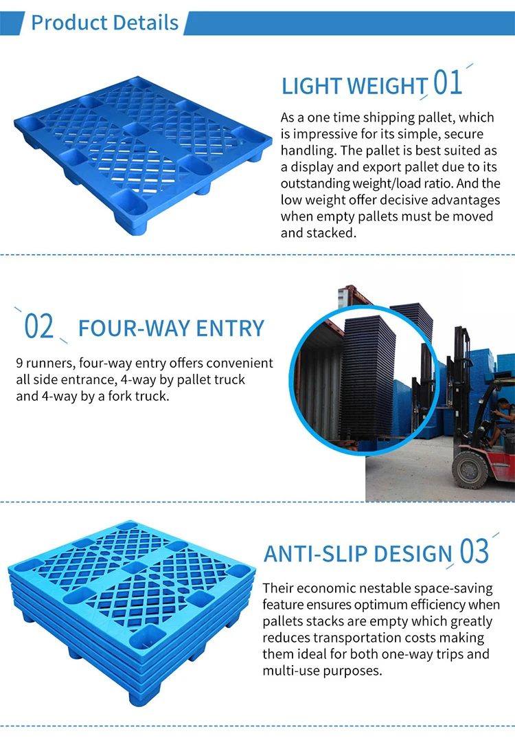 Nine Feet Single Sided Full Perimeter Base Nestable Warehouse Stacking Plastic Gird Type Hdpe Pallet