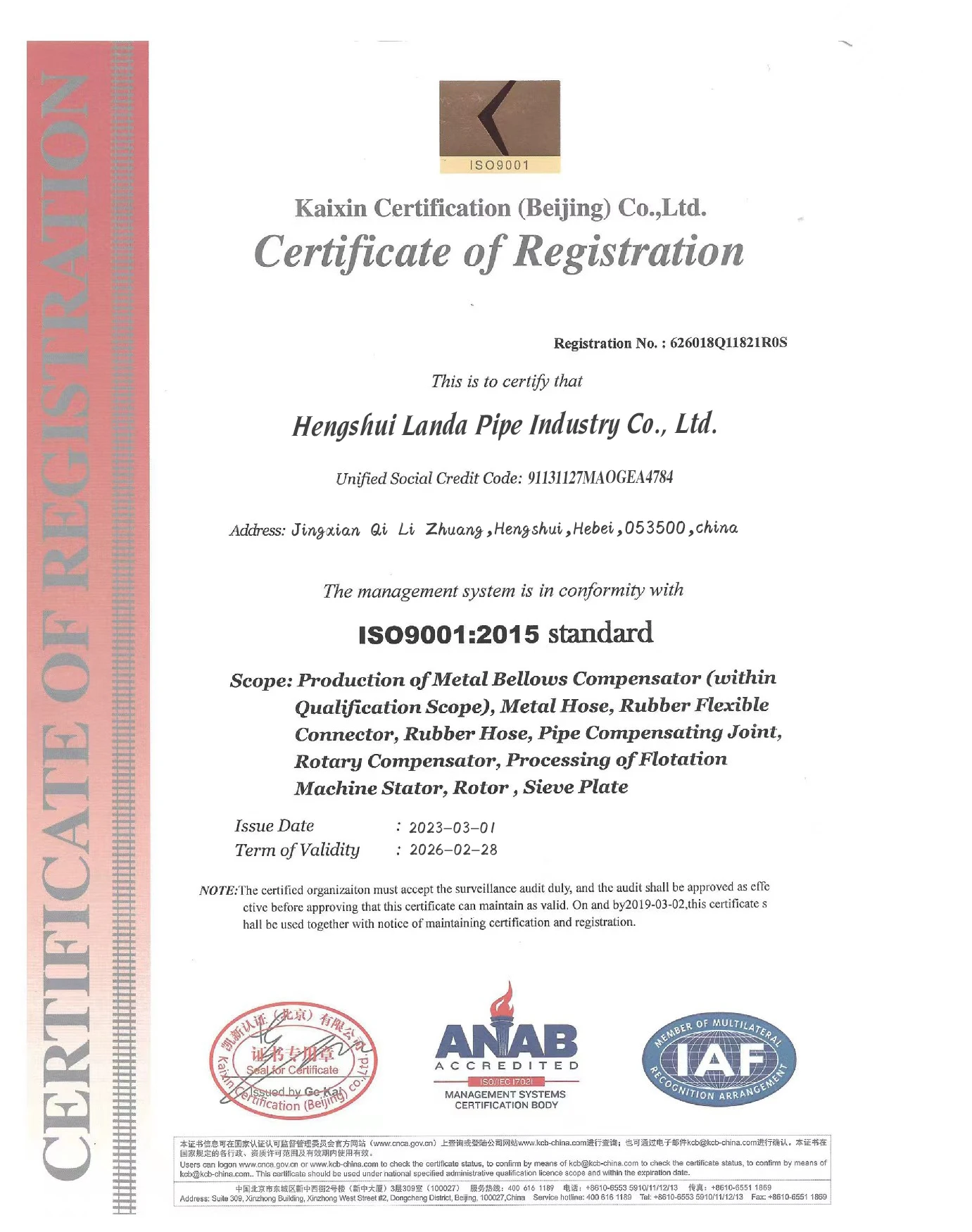 Standard | ISO9001 |