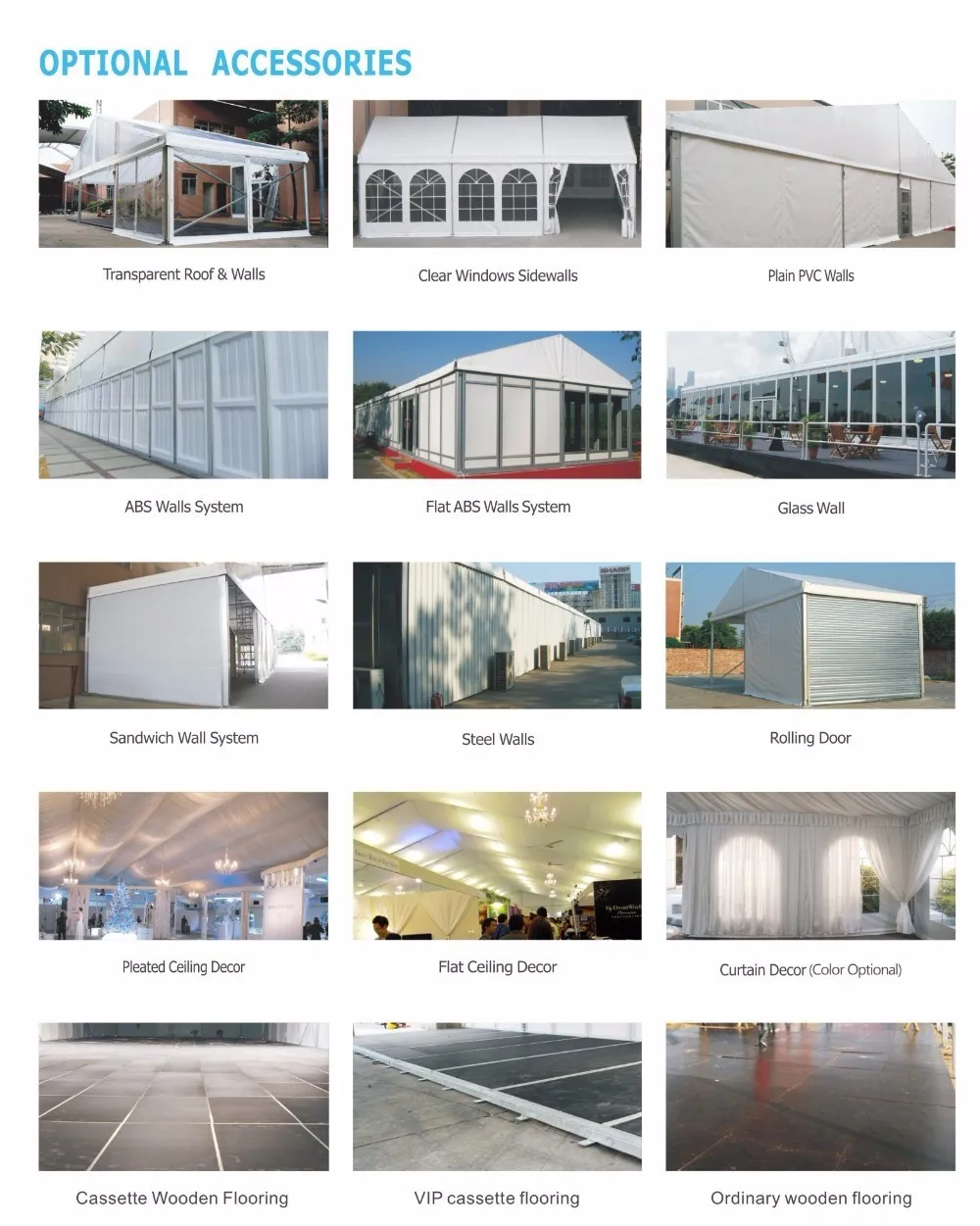 We are the leading tent manufacturer in China and produce different sizes of tents which clear span could be from 3m to 65m in different shapes.
