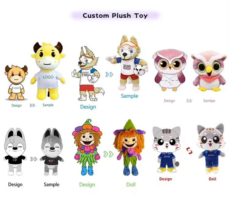 Get A quote | Contact: Send messages to mary or Marcia@meiya-toy.com Basic information to be provided. 1. Your design drawing: it will be more helpful to quote and make samples if you have multiple angles such as front, side and back. 2. The size of the plush toy you want 3. Estimated quantity for mass production | ||||||