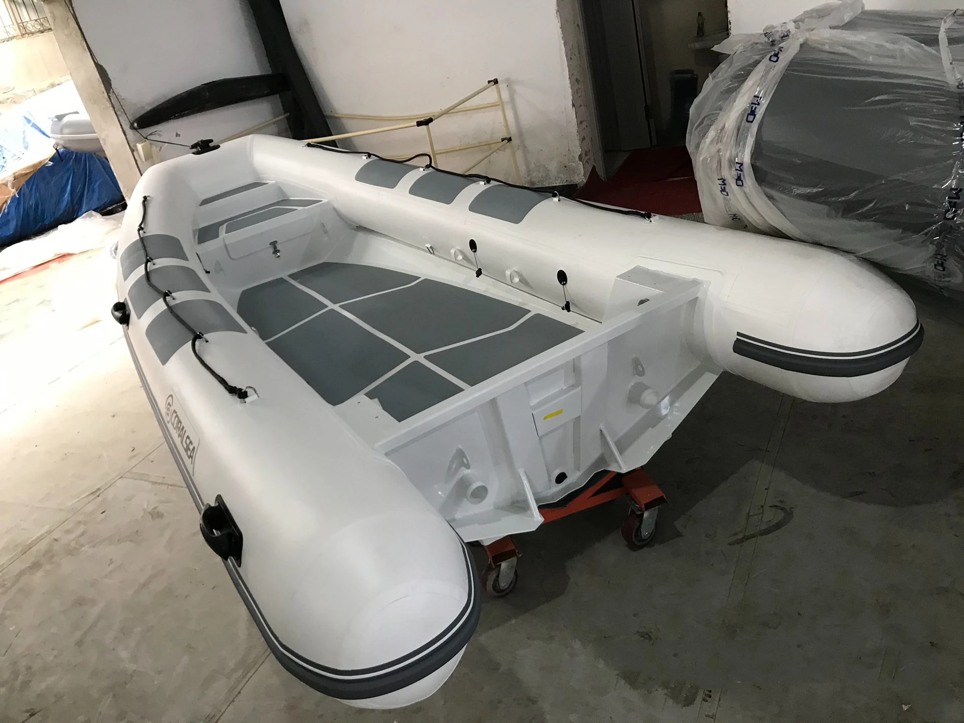 * Rigid V-shaped hull gives excellent directional stability *Electric outboard motor * Seaworthy * Console * High density, UV resistant PVC tubes – robust & durable to folding *Steering * 3 separate internal tube chambers *Canopy