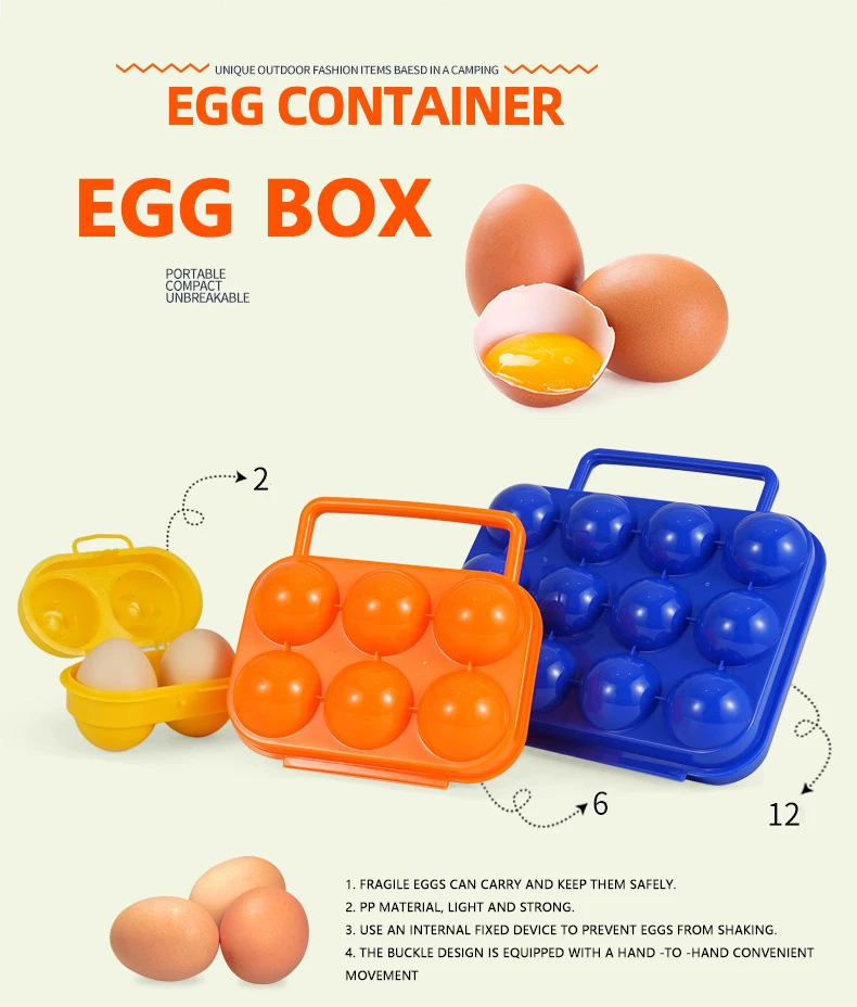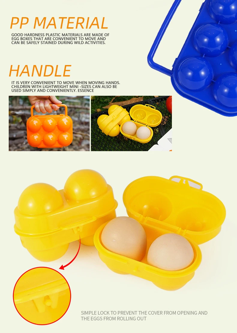 Outdoor Plastic Camping 6 Eggs Carrier Container with Handle Portable Kitchen Egg Holder Plastic Egg Storage Box