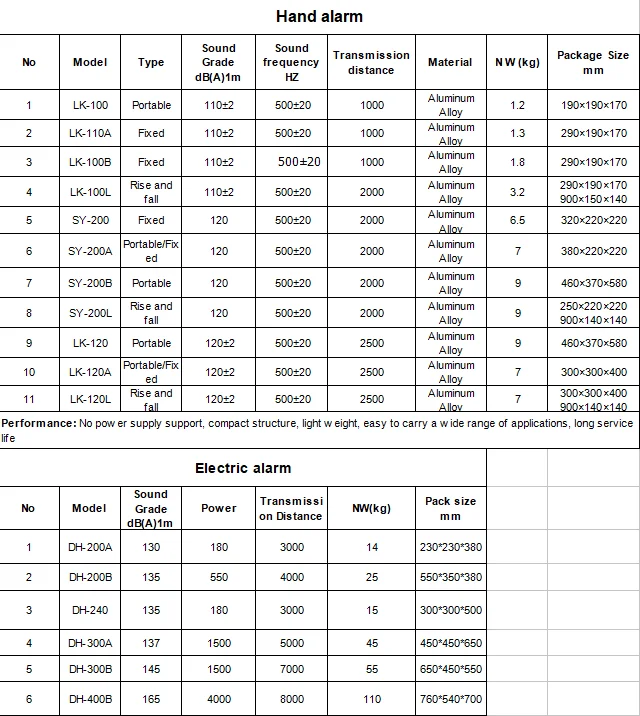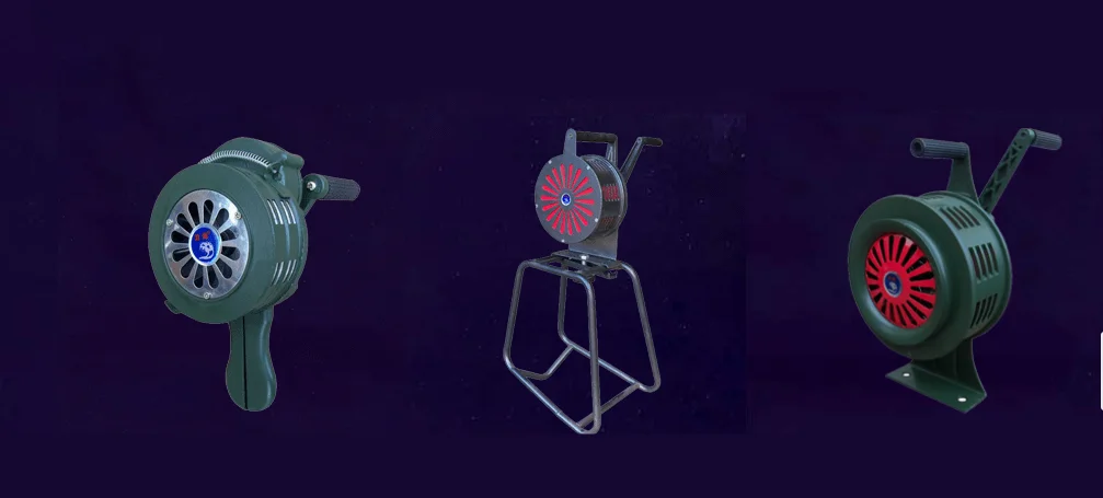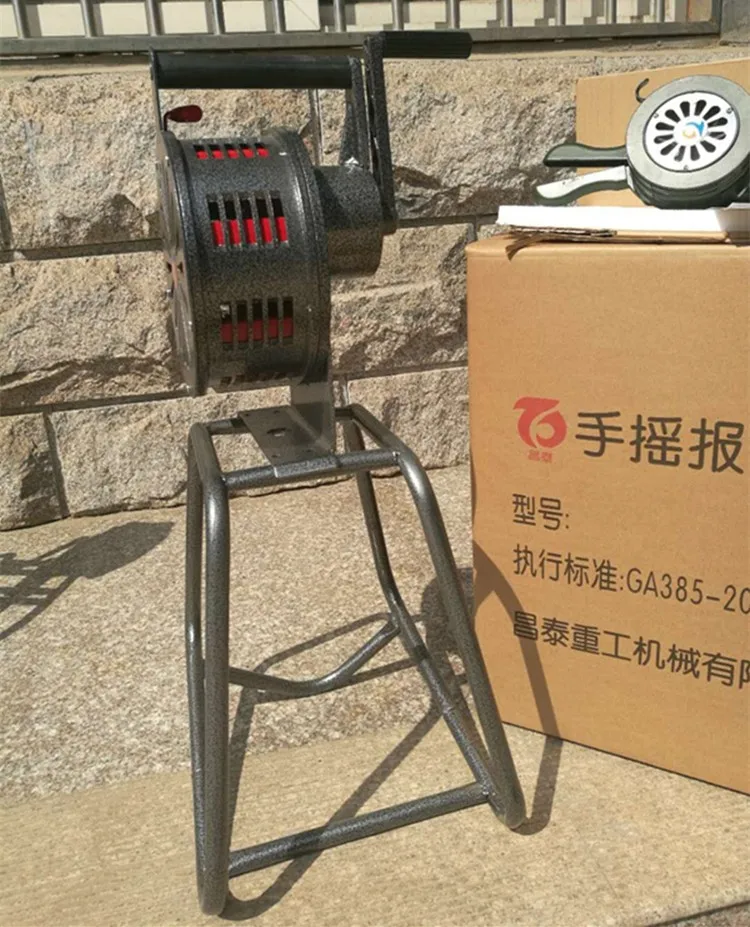 Alarms including hand alarm, electric alarm , each place for emergency warning, only hand alarm without power support, powered by turning a crank issued a warning signal effectively. Sound speed depends on the handle moved. Baffle the shutter mechanism is set in the sound window, can select the sound intensity signal, quickly closed the window, blocking, produce different signals.