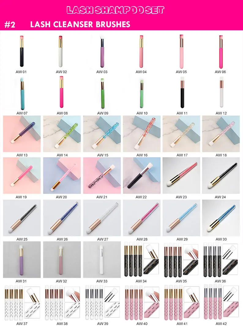 lash shampoo, lash rinse bottle, lash wand, lash cleanser brushes