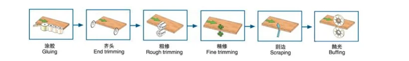 JX-07B | pre-milling,gluing ,pressing,end cutting,rough trimming,fine trimming,scraping and buffing | ||||||||||||||||