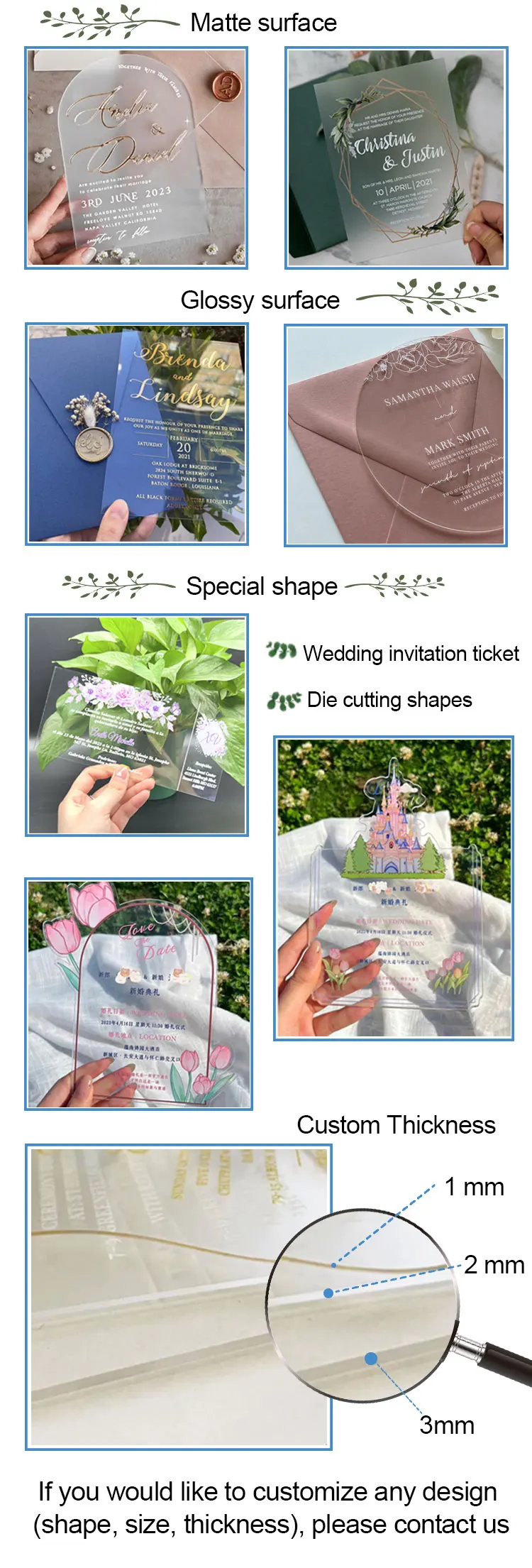 product name | Personalized Custom Design Plexiglass Wedding Invitation Luxury Elegant Acrylic Card |