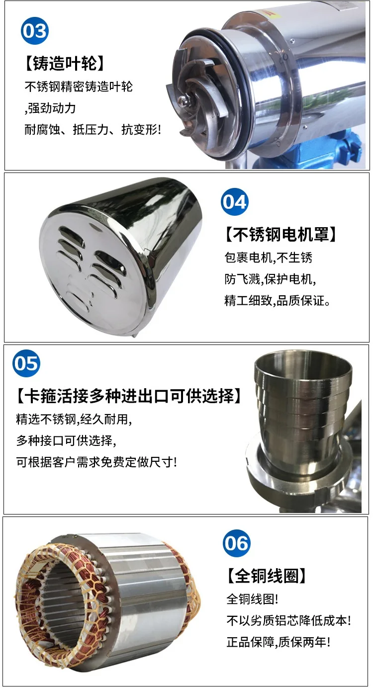 Sanitary centrifugal pump is mainly used for pharmaceutical, food, cosmetics and other sanitary fluid delivery. For example: pharmaceutical water delivery -WFI injection water/purified water delivery, can also be used for other sanitary requirements of the field. According to the use occasion and structure process, it can also be called: sanitary injection pump, sanitary purification pump, sanitary wort pump, sanitary concentrated extraction pump, GMP sanitary centrifugal pump, sterile sanitary pump, explosion-proof sanitary centrifugal pump, frequency conversion explosion-proof sanitary pump