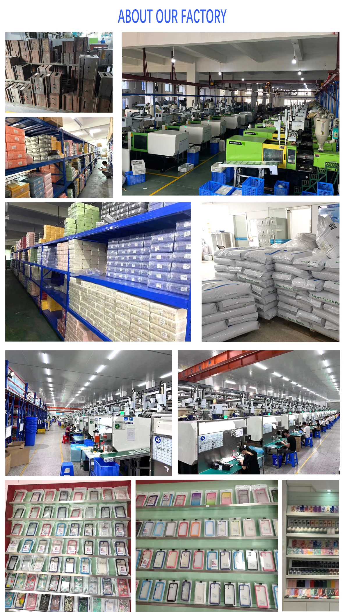 With the high speed development, in 2015, we shared stocks with 2 brother factories. One is for phone cases, and the other is for phone tempered glass, both of which are located in foshan, Guangdong to produce different kinds of products to meet our customers' demands.