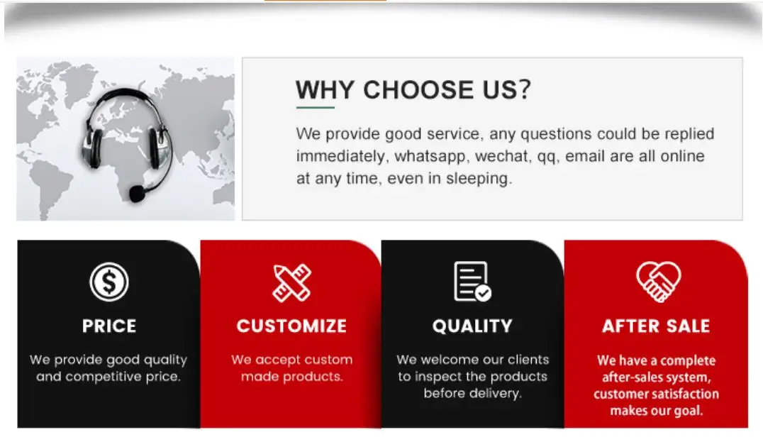 We use safe packaging cartons,wooden box and pallets. Ensure that customers receive intact and undamaged goods.