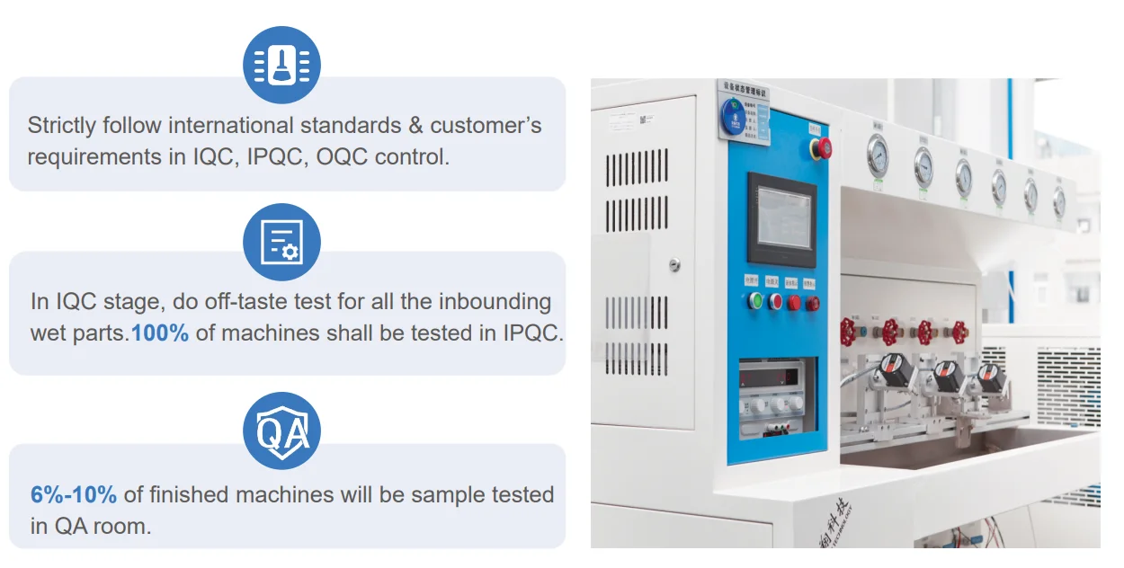 Feature | High water output rate LCD with Touch control buttons Carbon Fiber Filter UV sterilization system | |