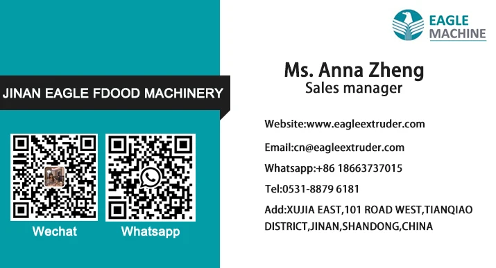 Q1: If we buy machines, what is the after-sale service? Jinan Eagle Food machinery manufacture will send the engineer to buyer’s factory. Offer the trainee program, start the related food production as customer request. Q2: If machines wearable parts need to change, what should we do? Jinan Eagle Food machinery manufacture will offer the wearable parts all the time. And offer the on-line video instruction for the operation. Q3: What is the payment terms if we want to buy the machines? Usually it is 30% by T/T, pay the balance by T/T before delivery or L/C at sight
