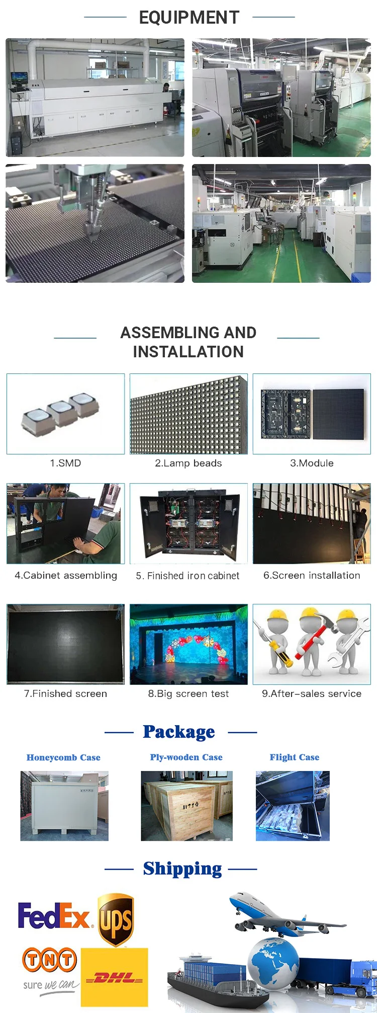 A5: We provide all kinds of technology trainings for free, including the operation and maintenance training of the LED screens in our factory. we can send an engineer team to the country of the customer to instruct the installation.