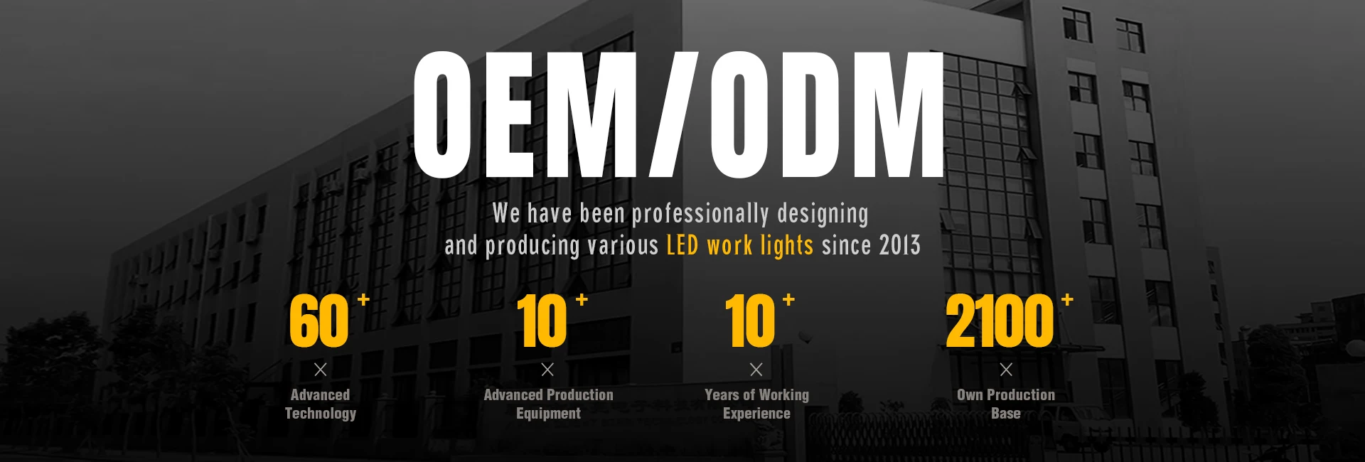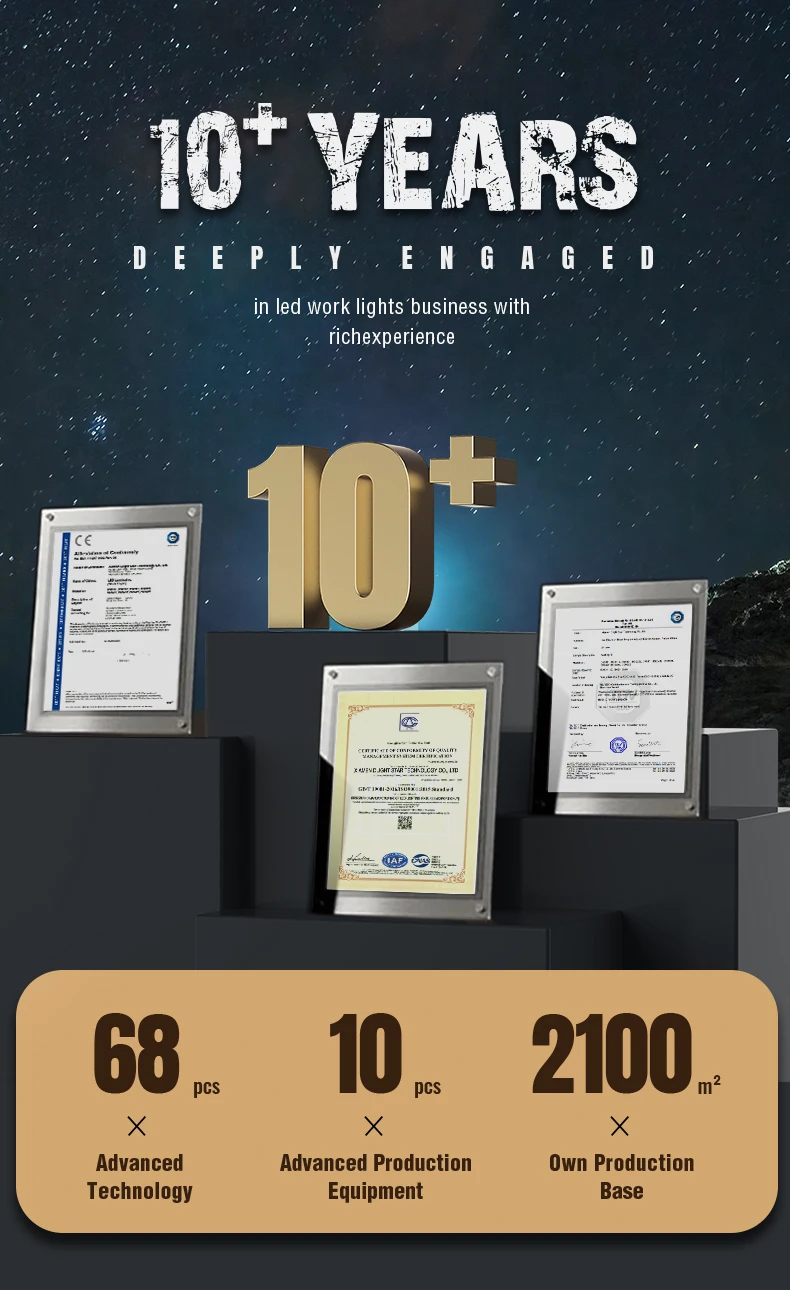 We are specialized in designing, manufacturing and exporting all kinds of led work lights. After years of unremitting efforts, our company has developed a professional R & D /technical /quality control, a large production system, and the mature management system. As an integrating group of industry and trade, we can provide you complete service, showing you a convenient and pleasant purchasing experience. From product design, packing design, to production, inspection and transportation, we own independent professional team in each link and guarantee a high-quality service to you.