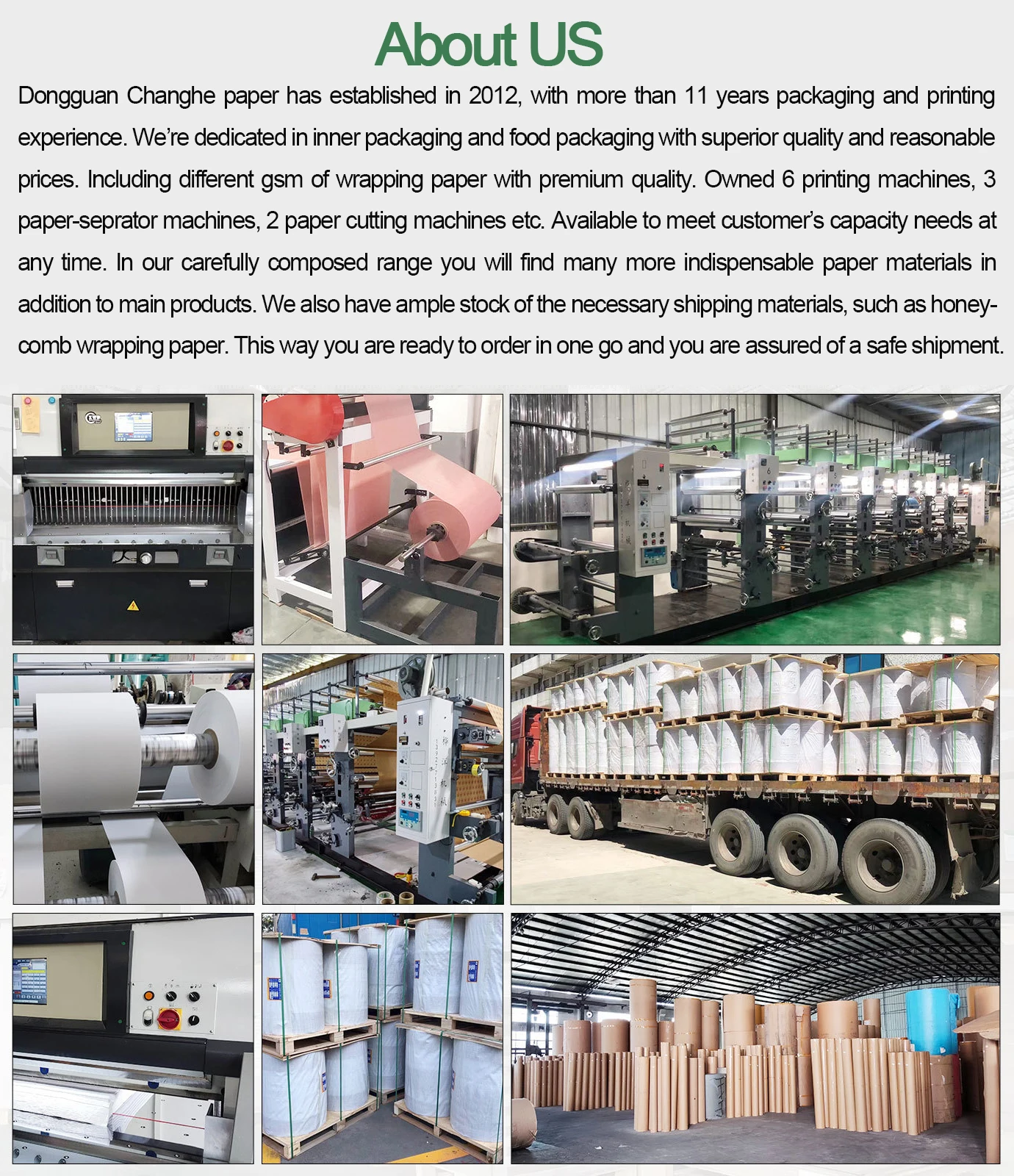 Paper Type | 40/45/50 to 120gsm kraft paper/PE coated/greaseproof paper |