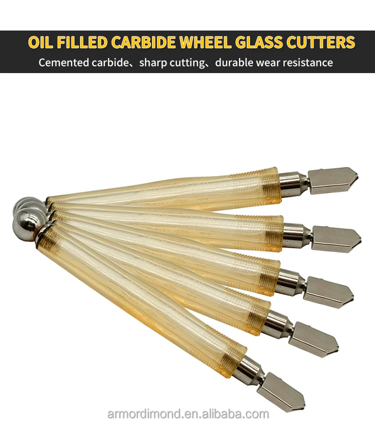 we can only make diamond glass cutter in China 10+ years ago .In 1999, all hard alloy wheel instead of diamond wheel for diamond wheel only has one blade ,if you are not a professional at cutting glass you cant manage it .Therefore, we started to exploder oil feed glass cutter according to Japan ese and Korean technology .Our Mr. Wang is the first person who used hard alloy wheel as glass cutter wheel in China .All alloy wheel are look the same ,but in different quality unless you use our glass cutter you will find the difference , ours sharper ,longer use life than others, because the wheel material recipe and skive technology are different .