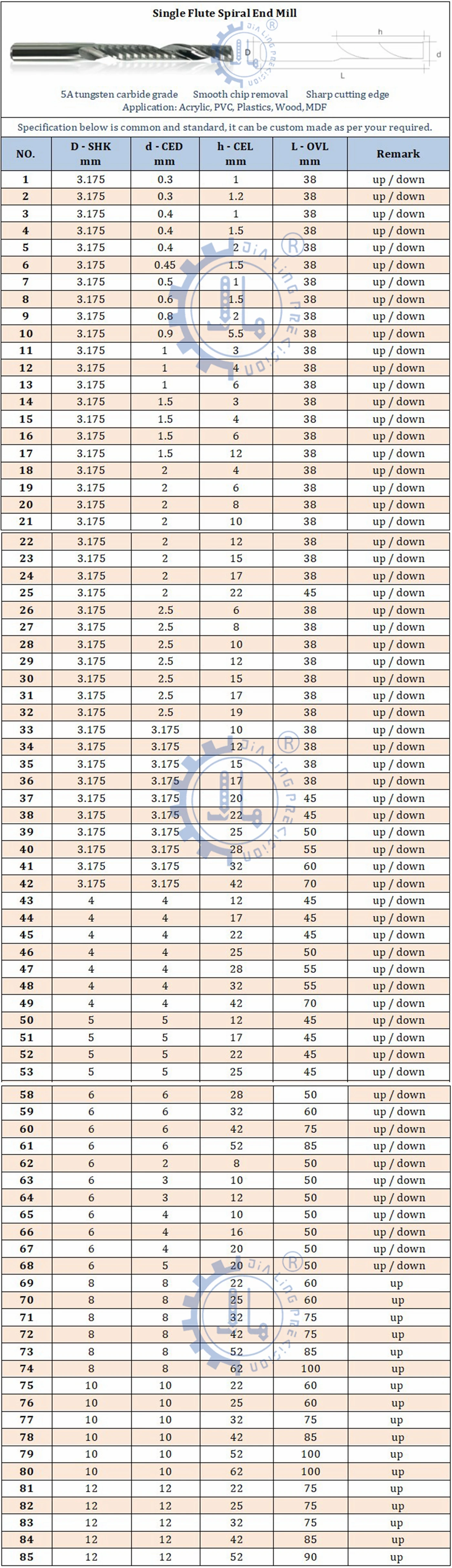 Shank diameter | 3.175mm, 4mm, 6mm, 8mm, 10mm, 12mm, 1/2 inch, 3/8 inch, 1/4 inch |