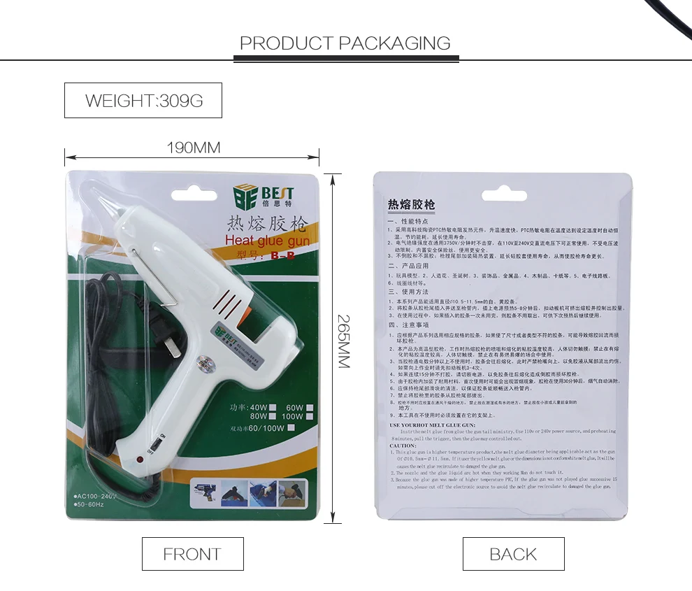 1.This glue gun adopt high-tech high temperature PTC.