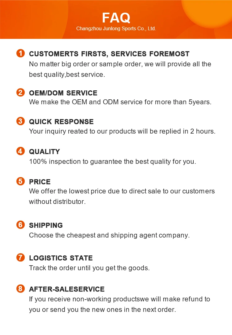 Changzhou Junlong Sports Company is a professional fitness products manufacturing factory, which was established in 2013, located in Changzhou, Jiangsu province. Junlong has 10000 square meters factory area, 120 workers together with high-level professional QC, research and development, product design department, and with BSCI, IS9001 approved.