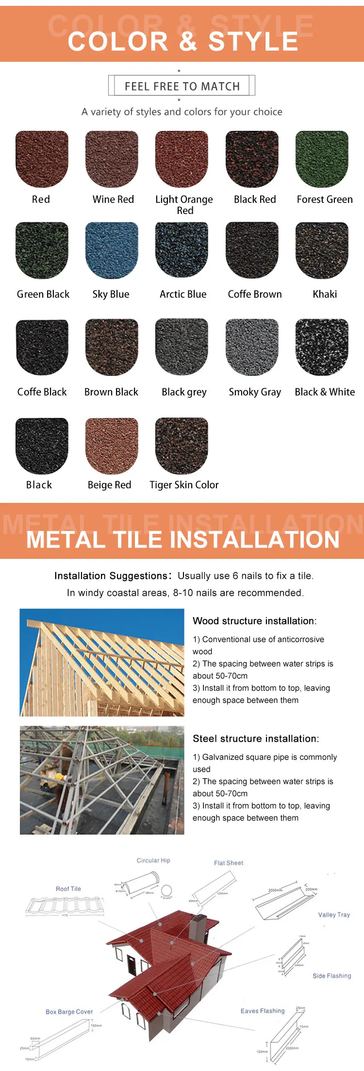 Surface | Color stone chip coated | ||||||