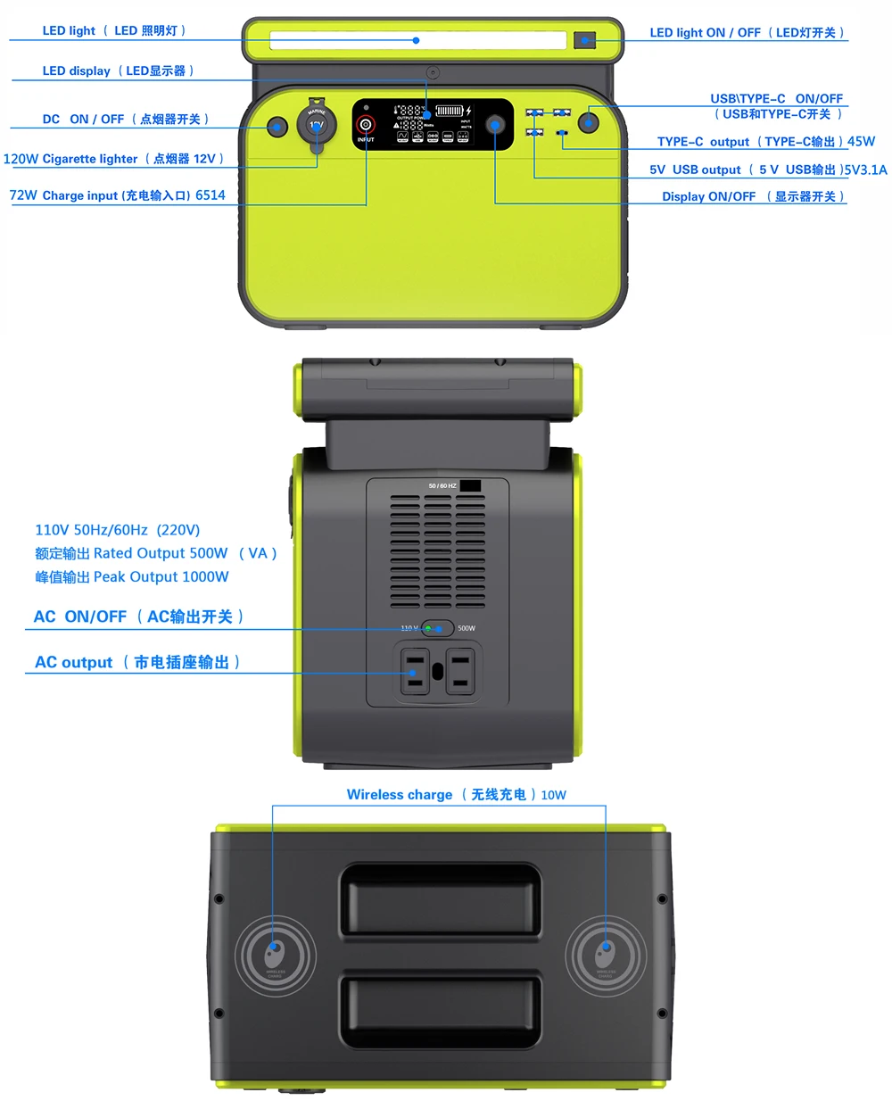 Fast Shipping 500watt Portable Power MINI Generator Solar Energy Station Wireless Charge Portable Power Station for Home