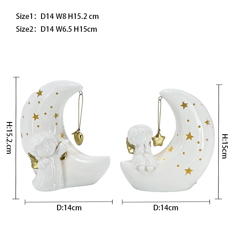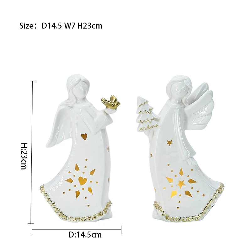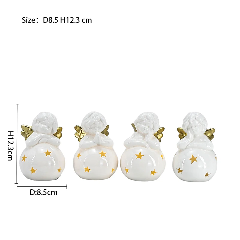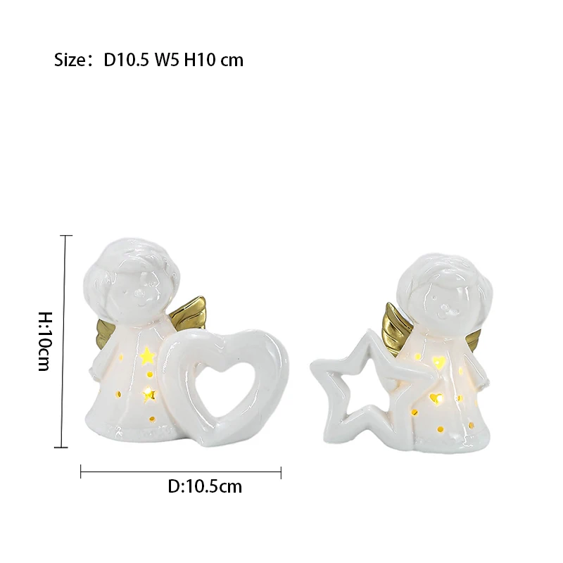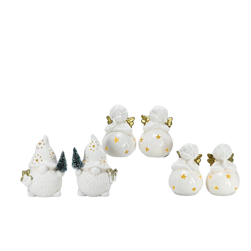 Christmas Custom Small White Ceramic Angel With LED Light Christmas Ceramic Home Decoration