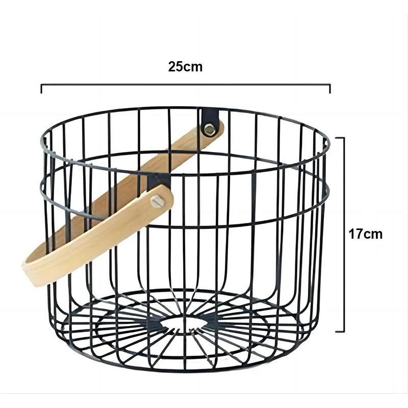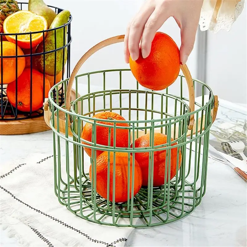 Product name | Household Metal Wire Mesh Storage Basket Portable Round Wrought Iron Fruit Storage Basket With Wood Handle |