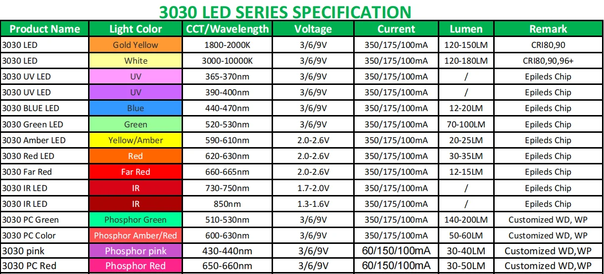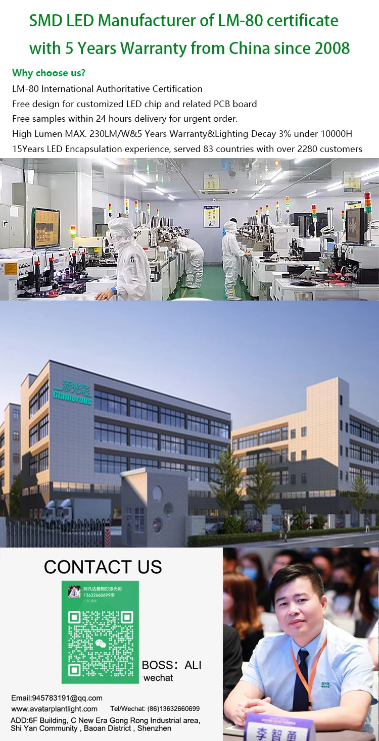 At present, the main products of our company is SMD LED 2835, 5730, 3528, 3030, 5050,3535 etc. Mainly focus on red, blue, green, yellow, orange, RGB, purple, pink light and full spectrum light series. Strictly according to ISO9001:2008 quality management system, rich experience has been accumulated.