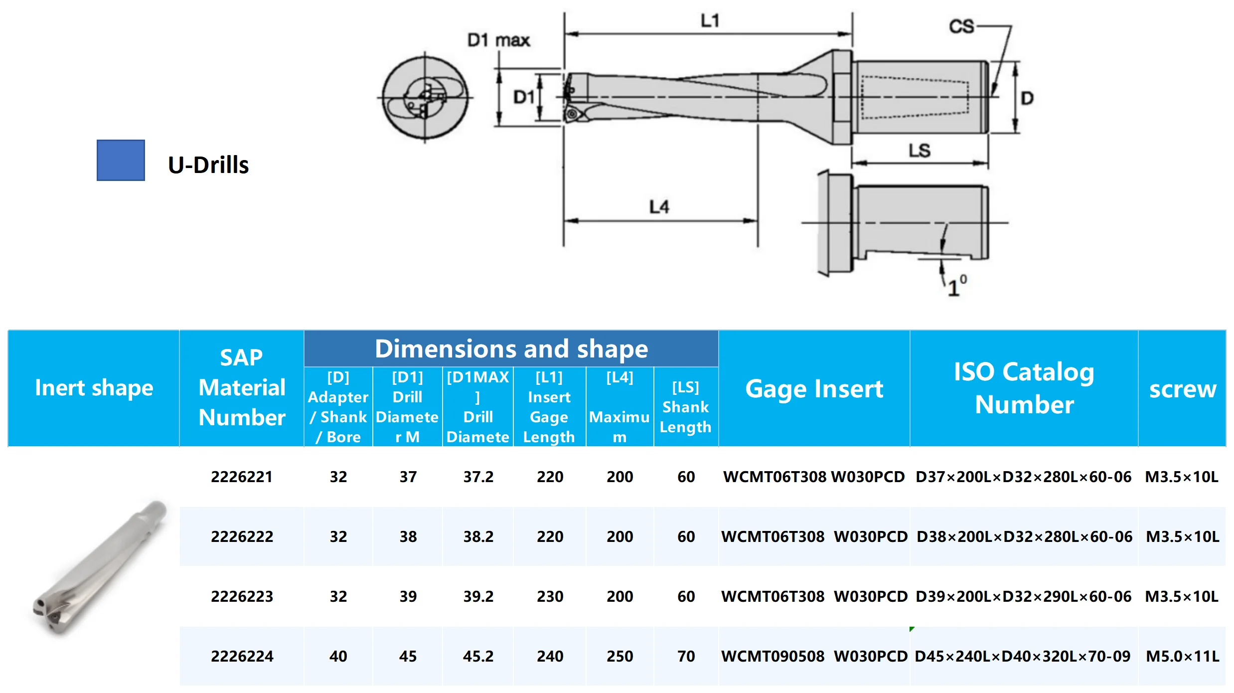 Package includes | 1 × DFT(WC) Type U drill + 1× Wrench (without insert) |