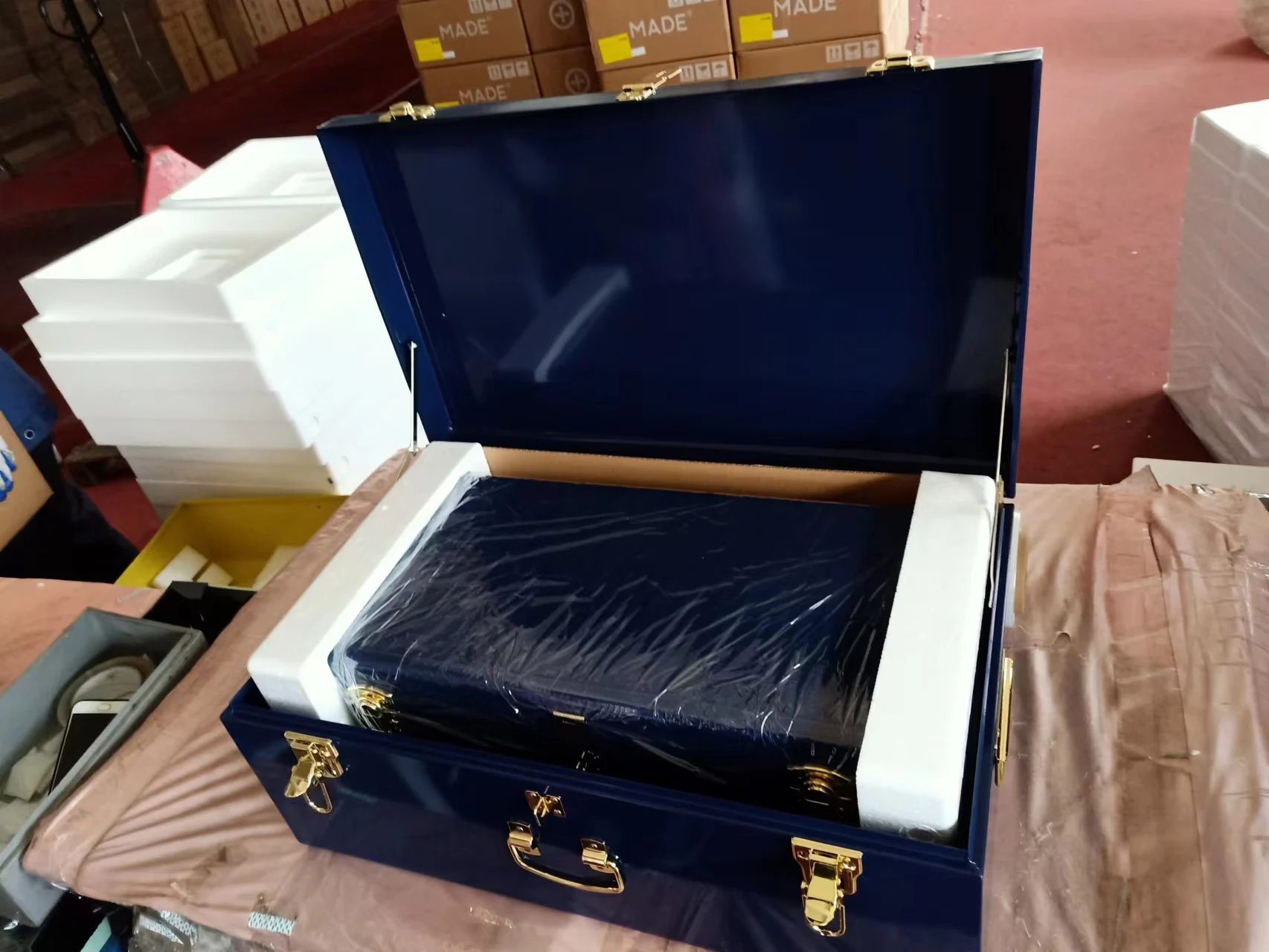 In order to protect the metal box from collision damage during transportation, our factory usually uses foam protection at both ends.(the figure below)