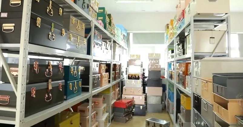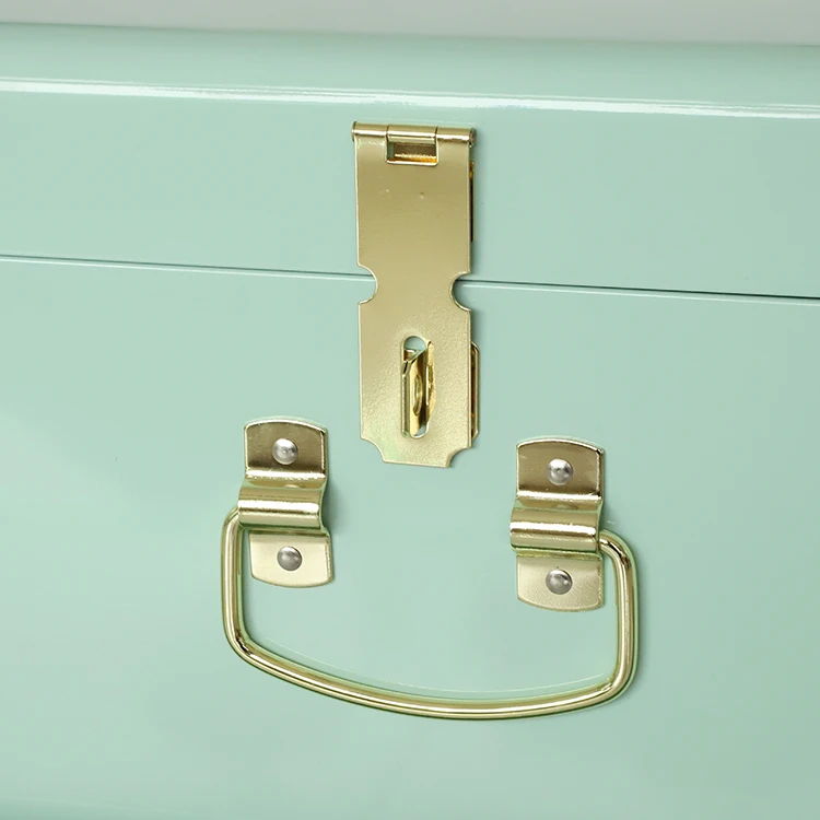 The set of metal trunk is decorated with gold metal lock accessories.