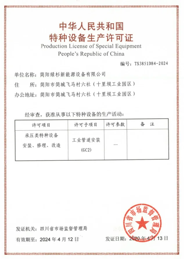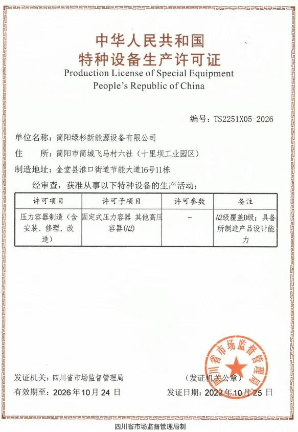◆ A2 (design and production license of pressure vessel).