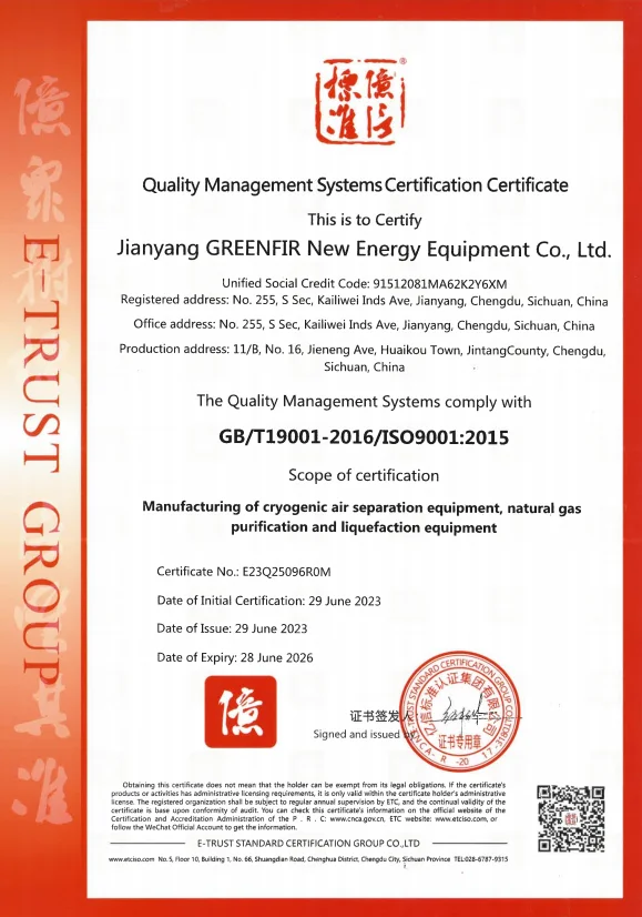 GreenFir is a professional cryogenic solutions provider and manufacturer, specialized in air separation unit, natural gas purification,liquefaction and storage, and process gases reciprocating compressor (API 618, API 11P / ISO 13631).