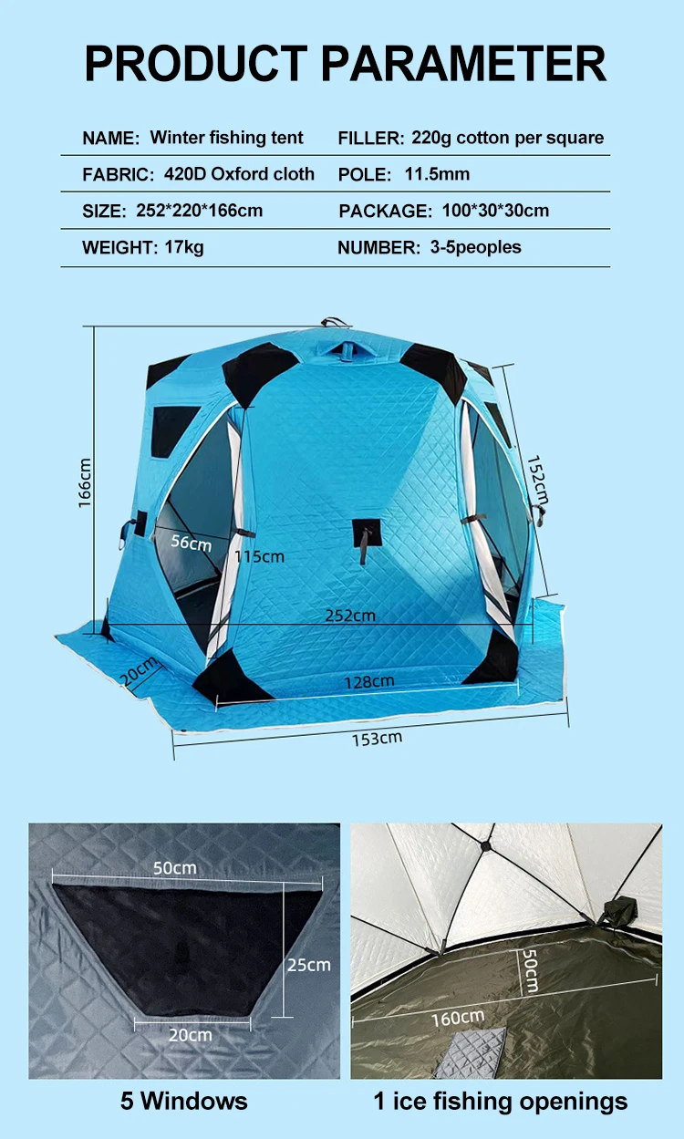 T010 Thickened outdoor camping dome pop up winter insulated tent for ice fishing
