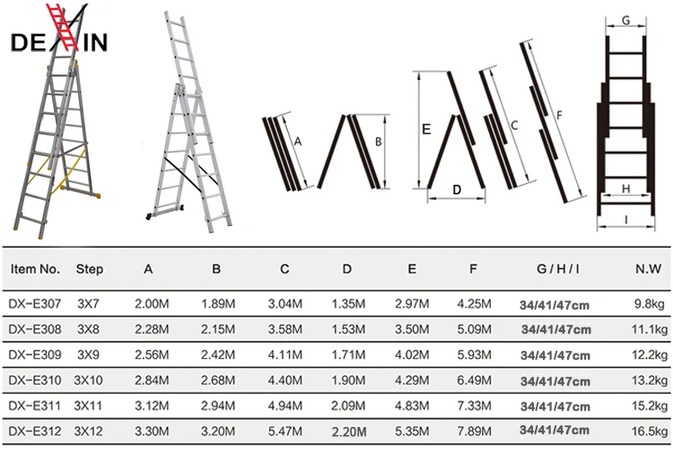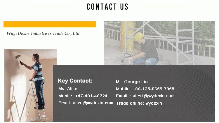 Dexin is a professional aluminum ladder factory engaged in producing ladders for more than 5 years. We mainly produce step ladders, step stools and portable scaffoldings. Our factory passed Chinese ladder safety regulations (GB12142:2007-Portable Safety Regulations on Metal Ladders), and most of our aluminum ladders and stools are approved by European standards of EN131 and CE/EN14183. So our products can be trustable for customers in Europe, especially in northern European countries. | ||||||