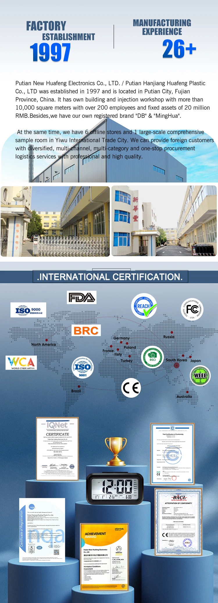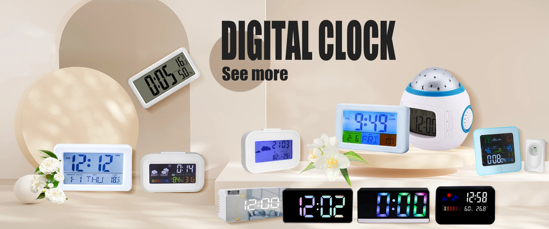 Function | 12/24 hours switch Voice control function Time,alarm,calendar,temperature Display time/date/temperature/alarm by turn Three sets of alarm clock function Voice controlled night light Automatic dimming function Night mode setting (18:00-06:00) Three display modes:DP-1/DP-2/DP-3 Temperature range:0°C~+50°C(32°F-122°F) |