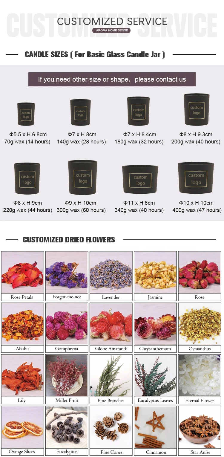 Wax Weight | 70g, 80g, 160g, 220g, 300g, 340g, 370g or custom |