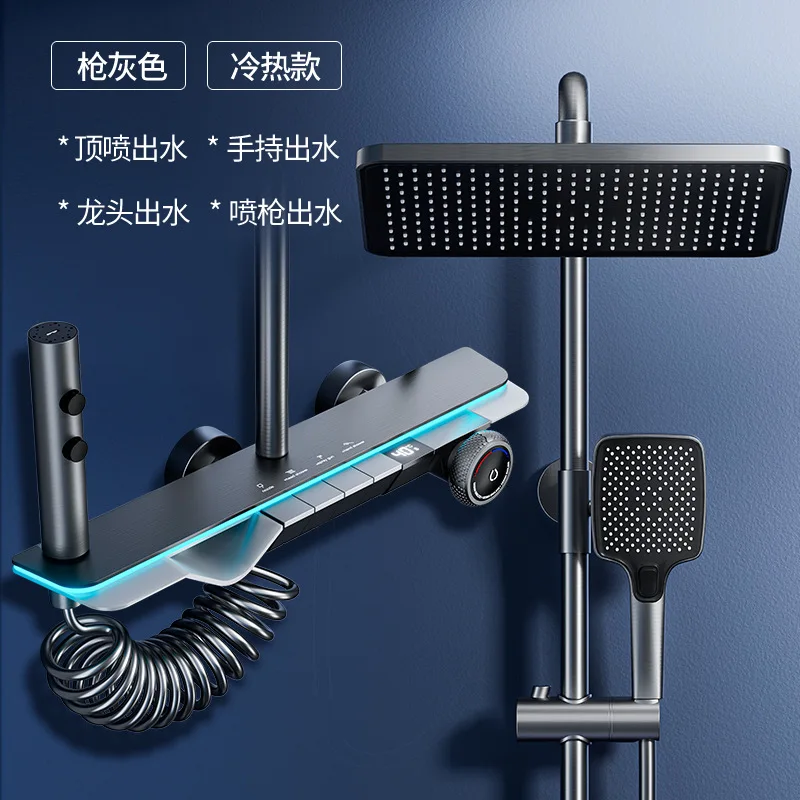 Modern 2024 New Model 1140QH Rain Shower with Dual Handle Square Slide Bar and Floor Stand Faucets Rain Style Design