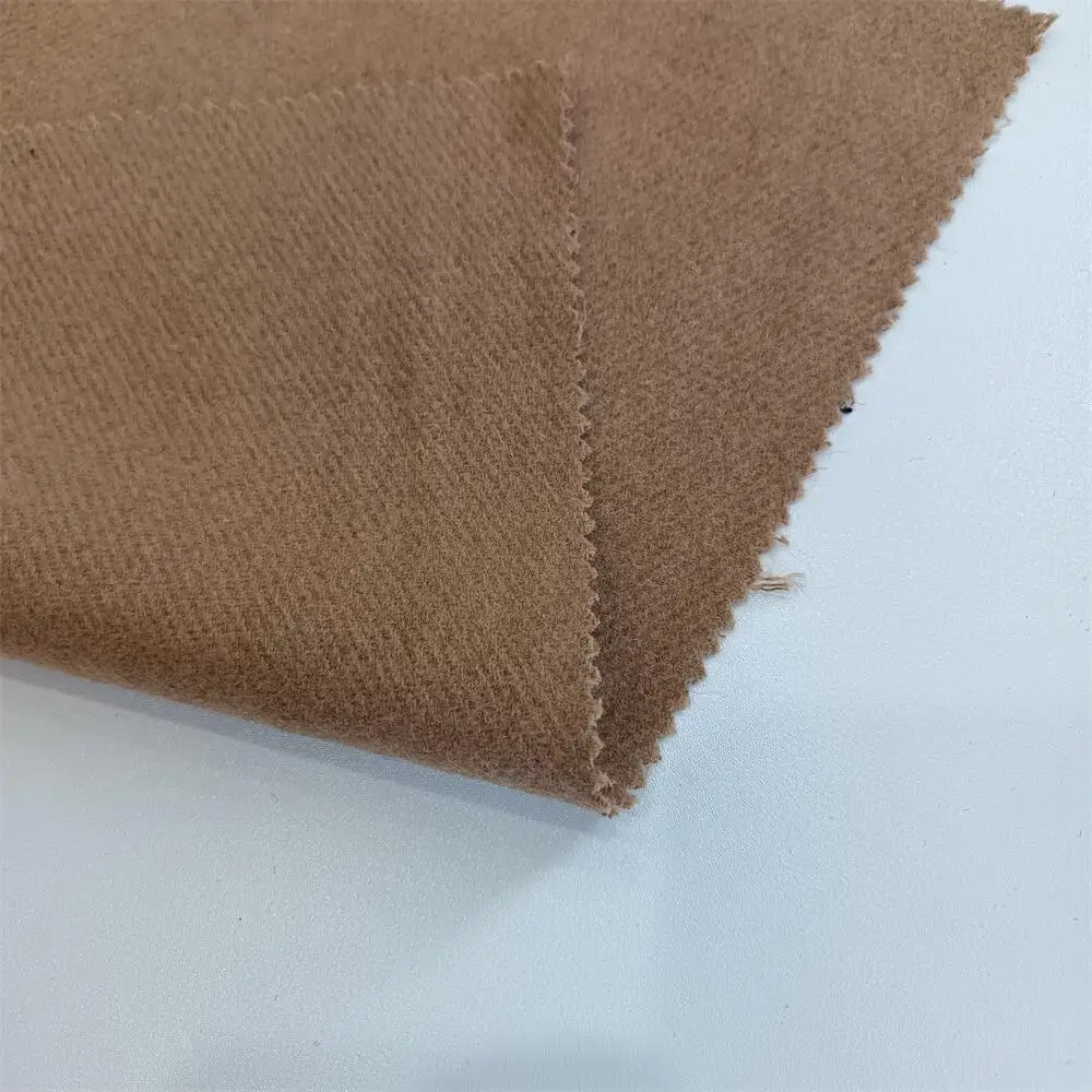 Fabric Description | Camel twill woolen wool melton polyester blended stock winter fabric |